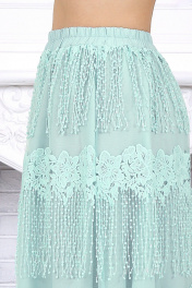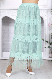Изысканный комплект, который легко становится основой праздничного и вечернего образа. Эффектная юбка в пол с воздушной фактурой и выразительным декором красиво движется при ходьбе, создавая нарядное настроение, а лаконичная блузка из вискозы мягко уравновешивает образ и делает его особенно элегантным. Костюм смотрится дорого, женственно и при этом остаётся удобным для целого дня. Продуманный крой подходит для весеннего и летнего сезона, комфортно садится на фигуру и особенно удачен для больших размеров. Эластичный пояс, мягкие материалы и гармоничное сочетание фактур обеспечивают свободу движения и приятную посадку. Универсальный комплект с белорусским качеством легко подойдёт как для торжества, так и для любого случая, где хочется выглядеть эффектно. Комплект женский 2-х предметный, состоящий из блузки и юбки. Блузка полуприлегающего силуэта, выполнена из вискозы. Горловина по спинке округлая, по переду округлая углубленная. Рукав короткий, втачной, низ рукава обработан кружевом с фестоном. По переду блузки есть центральный шов и на него настрочено кружево с фестоном. Длина блузки –54 см; длина рукава –27 см. Юбка прямая, расширенная к низу. Модель двухслойная: верхний выполнен из сетки с вышивкой, нижний из хлопчатобумажного подкладочного полотна. Юбка без застежки, на притачном поясе с протянутой внутрь эластичной лентой.