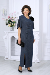 7481 Платье женское Шикарное вечернее платье из блестящего трикотажа с эффектом «люрекс» станет вашим идеальным выбором для праздничного образа! Длинный силуэт и элегантный разрез добавляют модели утонченную женственность, а короткие рукава «крылышко» создают лёгкость и комфорт. Эластичный трикотаж не сковывают движений, обеспечивая комфорт на протяжении всего вечера. Будьте в центре внимания в этом нарядном платье, идеально подходящем для любых торжественных событий! Платье женское полуприлегающего силуэта, выполнено из трикотажного полотна с фактурной лицевой стороной «люрекс». Модель на трикотажной подкладке, с плечевыми накладками. В левом боковом шве расположена застежка на потайную тесьму-«молнию» (35 см). Перед платья со смещенным к боковому шву рельефом, идущим от проймы до низа; в нижней части рельефа обработан разрез. Левая часть переда отрезная по линии талии, с односторонними горизонтальными складками, направленными от рельефа к центру. Спинка с талиевыми вытачками. Горловина спинки округлая, по переду V-образная, углубленная. Рукав короткий, втачной, формы «крылышко на запах», со скругленными срезами. Платье дополнено съемным «цветком» из основного полотна. Длина платья - 136 см; длина рукава - 34 см.