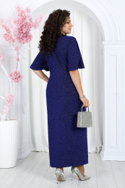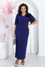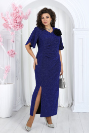 7481 Платье женское Шикарное вечернее платье из блестящего трикотажа с эффектом «люрекс» станет вашим идеальным выбором для праздничного образа! Длинный силуэт и элегантный разрез добавляют модели утонченную женственность, а короткие рукава «крылышко» создают лёгкость и комфорт. Эластичный трикотаж не сковывают движений, обеспечивая комфорт на протяжении всего вечера. Будьте в центре внимания в этом нарядном платье, идеально подходящем для любых торжественных событий! Платье женское полуприлегающего силуэта, выполнено из трикотажного полотна с фактурной лицевой стороной «люрекс». Модель на трикотажной подкладке, с плечевыми накладками. В левом боковом шве расположена застежка на потайную тесьму-«молнию» (35 см). Перед платья со смещенным к боковому шву рельефом, идущим от проймы до низа; в нижней части рельефа обработан разрез. Левая часть переда отрезная по линии талии, с односторонними горизонтальными складками, направленными от рельефа к центру. Спинка с талиевыми вытачками. Горловина спинки округлая, по переду V-образная, углубленная. Рукав короткий, втачной, формы «крылышко на запах», со скругленными срезами. Платье дополнено съемным «цветком» из основного полотна. Длина платья - 136 см; длина рукава - 34 см.