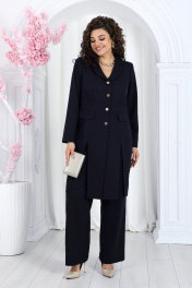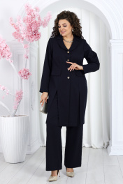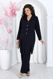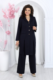 Нарядный брючный костюм из костюмной ткани с удлиненным жакетом Ninele 7486 синий