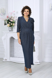 7500 Платье женское Стильное и эффектное платье для тех, кто хочет блистать на любом празднике. Модель выполнена из эластичного трикотажа с люрексом — ткань красиво переливается и подчёркивает изысканность образа. Удобный крой с акцентом на талию, запах и мягкие складки визуально вытягивают силуэт, а асимметричный низ добавляет динамики. Съемный цветок позволяет менять настроение образа — от сдержанного до яркого и романтичного. Это платье создано для женщин, которые ценят комфорт и красоту в каждом движении. Платье женское полуприлегающего силуэта, выполнено из трикотажного полотна с фактурной лицевой стороной «люрекс». Модель на трикотажной подкладке, с плечевыми накладками. На правой части переда, вдоль отрезного пояса, заложены косые односторонние складки; детали лифа и юбки скреплены на запах. Низ платья асимметричный: правая часть переда -- удлинена к центру и оформлена углом, левая -- скругленная и входит в правый боковой шов. На спинке обработаны талиевые вытачки. В левом боковом шве предусмотрена застежка на потайную тесьму-«молнию» (35 см). Рукав длиной 3/4, втачной. Платье дополнено съемным «цветком» из основного полотна. Длина платья-138 см; длина рукава-41 см.
