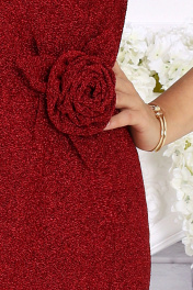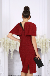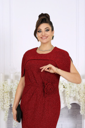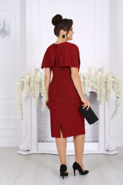7524 Платье женское Элегантное женское платье создано для особых случаев, когда хочется выглядеть безупречно и чувствовать себя уверенно. Модель полуприлегающего силуэта мягко подчёркивает фигуру, визуально вытягивает силуэт и комфортно садится на фигуру, в том числе в больших размерах. Платье выполнено из эффектного трикотажного полотна с фактурной лицевой стороной «люрекс», которое красиво переливается при свете и придаёт образу праздничное настроение. Трикотажная подкладка обеспечивает комфорт при носке и идеальную посадку. Особый акцент модели — эффектная пелерина с фигурным низом и разрезами от плечевых швов. Она создаёт ощущение многослойности, скрывает зону плеч и рук и добавляет образу торжественности. Съёмный декоративный цветок позволяет менять настроение платья — от сдержанной классики до выразительного праздничного образа. Это платье станет идеальным выбором для свадьбы, торжественного вечера, юбилея, корпоратива или праздничного выхода, подчёркивая статус и вкус своей обладательницы. Платье женское полуприлегающего силуэта, выполнено из трикотажного полотна с фактурной лицевой стороной «люрекс». Модель на трикотажной подкладке, без воротника и рукавов, без плечевых накладок. Перед отрезной по линии талии; на верхней части обработан рельеф, направленный от левой проймы, на нижней части, на продолжении линии рельефного шва, обработана талиевая вытачка. По обе стороны от подреза талии переда застрочены косые односторонние складки. Спинка с талиевыми вытачками и средним швом, в верхней части которого обработана застежка на потайную тесьму-«молнию» (50см), в нижней – разрез. Горловина круглой формы, спереди углубленная. В шов обтачивания горловины входит пелерина с фигурным низом и разрезами от плечевых швов; пелерина разъемная по середине спинки. Платье дополнено съемным «цветком» из основного полотна. Длина платья - 106 см.