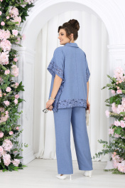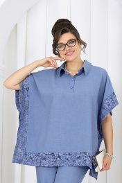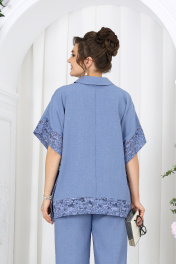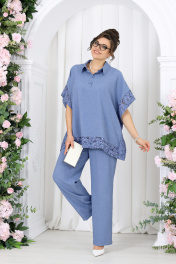 7525 Комплект брючный Легкость льна без заломов — костюм, в котором комфорт сочетается с элегантностью. Если вам нравится изделия из натурального льна, но надоело ходить всегда в мятой одежде, то ткань “лен-вишер” эта ваше находка. Хотя в составе ткани не присутствует лен, она прекрасно дышит и полностью повторяет текстуру натурального льна, а самое главное она практически не мнется. Костюм состоит из свободной блузки и классических брюк, которые создают гармоничный и универсальный образ. Такой костюм легко подойдет как для праздничных мероприятий, так и для повседневных выходов — от деловых встреч до семейных торжеств. Бренд NINELE CHIC более 20 лет создаёт женскую одежду с полным циклом производства в Беларуси, уделяя особое внимание посадке, тканям и современному дизайну. Комплект брючный 2-х предметный, состоящий из блузки и брюк. Блузка прямого силуэта, выполнена из “льна-вишера”. Рукав цельнокроенный со спущенной линией плеча, без плечевых накладок. Горловина оформлена отложным воротником на отрезной стойке. По центру полочки оформлена накладная планка до линии груди, на ней обработана застежка на 4 петли и пуговицы. По спинке есть центральный шов. Боковые, низ рукава и низ блузы обработаны отделочным кружевом. Длина блузки – 67,5 см - (50-58 р-р.); длина рукава (от горловины) – 37 см (50-58 р-р.). Брюки классические, с посадкой на талии, выполнены из “льна-вишера”. Модель без стрелок, с центральной застёжкой на тесьму-«молнию», на притачном поясе, застегивающемся на петлю и пуговицу. Задние и передние половинки брюк с талиевыми вытачками, направленными от пояса вниз. Спереди обработаны боковые наклонные карманы. Для лучшего прилегания брюк в области талии в поясе по задним половинкам вставлена эластичная лента. Длина брюк по боковому (с поясом) – 107 см - (50-58 р-р).
