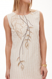 Платье прямого покроя, из льняного полотна .Модель сочетает в себе женственность и удобство. Перед декорирован дизайнерской вышивкой.
