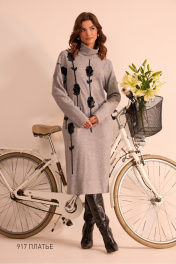 Стильное трикотажное женское платье из мягкого трикотажного полотна, модель полуприлегающего силуэта, со спущенным рукавом. В боковых швах присутствуют карманы. Перед платья декорирован дизайнерской вышивкой.