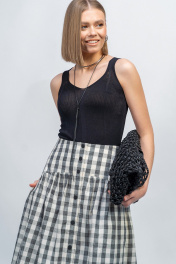 Базовый трикотажный топ в комплекте с дизайнерской юбкой.