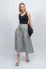 топ: 58% акрил, 25% вискоза, 17% полиэстер; юбка: 85% хлопок, 15% лён
