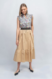 Блузка из лёгкого и прятного к телу хлопкового полотна премиального качества в комплекте с базовой юбкой на резинке.