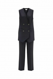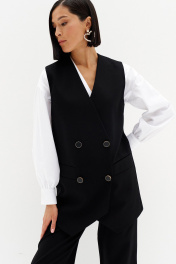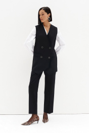 Костюм классического кроя для тех, кто предпочитает стиль и комфорт. Двубортный жилет удлинённого кроя, на подкладке. Брюки с высокой талией. В 44 размере: полуобхват груди 46 см, полуобхват бёдер 50 см, в брюках полуобхват по поясу 36 см, полуобхват бёдер 50 см. В 46 размере: полуобхват груди 48 см, полуобхват бёдер 52 см, в брюках полуобхват по поясу 38 см, полуобхват бёдер 52 см В 48 размере: полуобхват груди 50 см, полуобхват бёдер 54 см, в брюках полуобхват по поясу 40 см, полуобхват бёдер 54 см. Длина жилета 75 см, длина брюк 103 см.