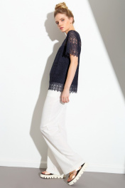 Брюки прямые свободные от бедра с боковыми наклонными карманами спереди.