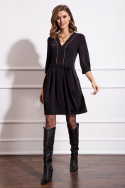 Стильное струящееся платье с отрезной талией и золотистым декором Nova Line 50162 чёрный