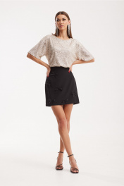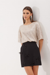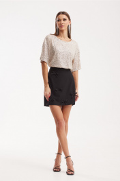 Бежевый и черный комплект блуза и юбка с пайетками N.O.W. 1502