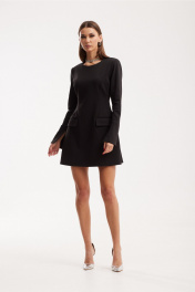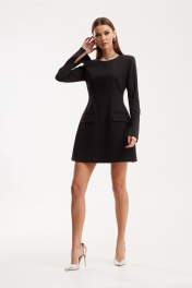 Платье женское полуприлегающего силуэта, по форме «песочные часы». Платье втачного покроя, на подкладке. По переду расположены прорезные карманы в рамку с клапаном в шве притачивания боковой части. На спинке расположены талиевые вытачки и средний шов с «тесьмой-молнией». Платье к низу слегка расширено, длина «макси». Горловина округлой формы. Рукав одношовный с разрезом до локтя. Платье длины мини. Ширина изделия на уровне глубины: 42р – 43см, 44р – 45см, 46р – 47см; Ширина по линии талии: 42р – 34см, 44р – 36см, 46р – 38см; Ширина по линии бедер: 42р – 52см, 44р – 54см, 46р – 56см; Ширина рукава под проймой: 42р – 15,5см, 44р – 16,5см, 46р – 17,5см; Ширина плеча: 42-46р – 11см; Ширина спинки: 42-46р – 36см; Длина рукава: 42-46р – 64см; Длина по среднему шву спинки: 42-46р – 81см.