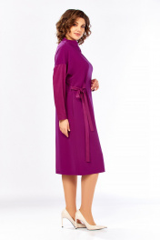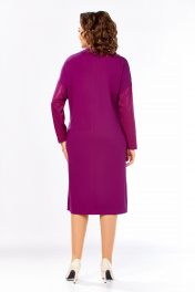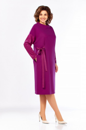 Платье женское, прямого силуэта со спущенным длинным рукавом из отделочной ткани. Цельнокроенный воротник-стойка. С левой стороны в области талии декор, в виде ниспадающего пояса из отделочной ткани. Карманы в боковых швах. Длина платья 115см.