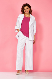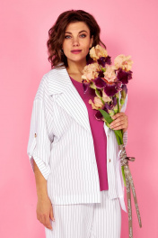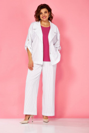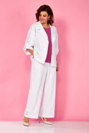 Блуза, брюки, жакет Ольга Стиль С-935 полоска-розовый