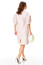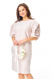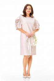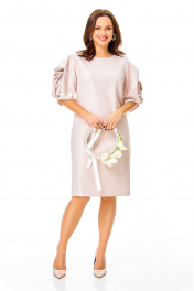 Нарядное платье полуприлегающего силуэта. Вырез горловины округлой формы. По переду нагрудные вытачки. Спинка со средним швом с потайной молнией и разрезом внизу. Рукав длиной ниже локтя, выполнен в форме розы.