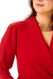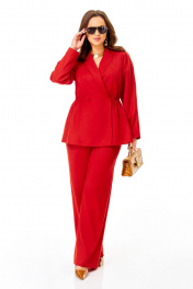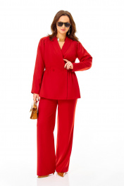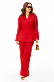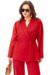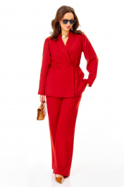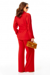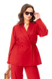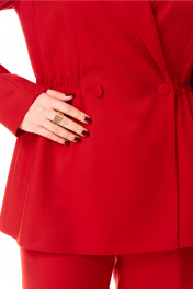 Элегантный костюм, состоит из жакета и брюк, жакет полуприлегающего силуэта, с двубортной застежкой на петли и пуговицы, рельефными швами. Воротник-шаль, рукав реглан со складками сверху. В области талии отрезная кулиска, в которую вставляется резинка. Длина ниже линии бедер, на подкладке. Брюки палаццо, на поясе на резинке без застежки, карманы в боковых швах.