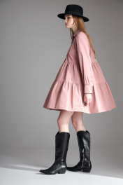 Платье свободного силуэта из хлопка с воланами и застежкой на пуговицах Орхидея 1113