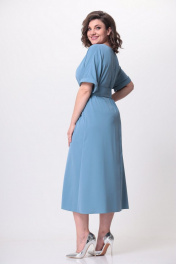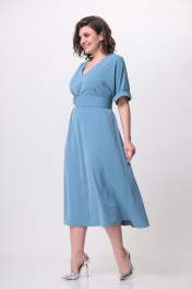 Платье женское А-образного силуэта (расширенное к низу), цельнокроеное. Горловина «V»-образной формы. Платье выполнено из струящейся ткани. По переду расположены нагрудные вытачки идущие из бокового шва. Также по переду средний шов. По спинке средний шов. Платье удлиненное. Длина рукава до локтя. Дополнение к платью служит пояс, фиксирующийся на пришивные кнопки. Ширина изделия на уровне глубины: 50р - 58см. 52р – 60см. 54р – 62см. Ширина по линии талии: 50р – 55см. 52р – 57см. 54р – 59см. Ширина по линии бедер: 50р – 62см. 52р- 64см. 54р – 66см. Длина платья по среднему шву спинки: 122см. Ширина плеча от горловины: 37см. Ширина рукава под проймой: 50р – 22 см. 52р – 23см. 54р – 24см.