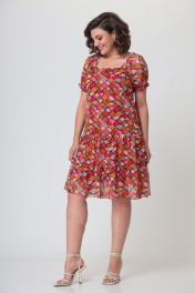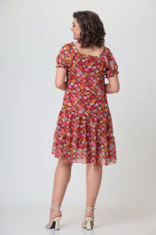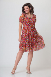 Платье женское полуприлегающего силуэта, расширенное к низу за счет воланов. Выполнено из шифона на трикотажной подкладке. Платье состоит из переда, спинки, верхнего волана переда и спинки, нижнего волана переда и спинки, рукавов. Горловина в виде “карэ”. Верхний срез рукава присобран на тесьму, нижний срез рукава присобран на резинку. Рукав в форме фонарика. Длина платья – 102 см Длина рукава – 28 см