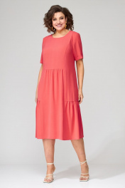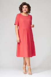 Платье с рельефами и сборками из струящейся вискозы Орхидея 1274 коралл