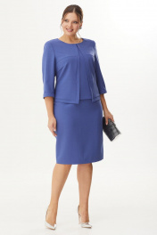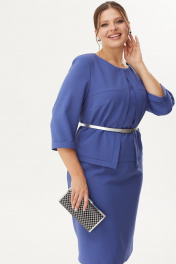 Платье полуприлегающего силуэта, втачного покроя. На подкладке верхняя часть спинки и переда. Рукав 3/4 с отрезной манжетой. Выполнено из плательно-костюмной ткани. Платье резное. По спинке расположены талевые вытачки и средний шов переходящий в шлицу. Верхняя часть спинки отлетная (имитирующая жакет) с талевыми вытачками и складкой, по центру которой застрочена и фиксируется пуговицами. Верхняя часть переда состоит из кокеток и центральной нижней планки. Рукав двухшовный, втачной. Горловина округлой формы. Ширина изделия на уровне глубины: 50р – 52,5см, 52р – 54,5см, 54р – 56,5см. Ширина по линии талии: 50р – 45см, 52р – 47см, 54р – 49см. Ширина по линии бедер: 50р – 55см, 52р – 57см, 54р – 59см. Длина по среднему шву спинки: 50р – 104см, 52р – 104см, 54р – 104см. Ширина спинки: 50р – 40см, 52р – 40см, 54р - 40см. Ширина плеча: 50р – 9см, 52р – 9см, 54р – 9см. Ширина рукава под проймой: 50р – 19см, 52р – 20см, 54р – 21см. Длина рукава: 50р – 47см, 52р – 47см, 54р – 47см. Пояс не прилагается