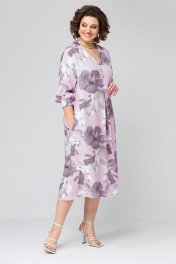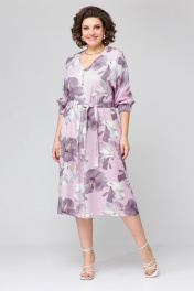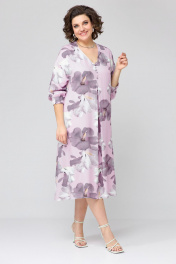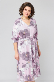 Платье женское, покроя спущенное плечо, свободной силуэтной формы, расширенное к низу. Горловина V-образной формы, по переду расположена встречная складка, на складке пришиты декоративные пуговицы. Рукав 3\4 с манжетой на резинке по низу. Спинка со средним швом. К платью прилагается пояс из основной ткани. Ширина изделия на уровне глубины: 50р – 56см, 52р – 58см, 54р – 60см. Ширина по линии талии: 50р – 58см, 52р – 60см, 54р – 62см. Длина по среднему шву спинки: 50р – 120см, 52р – 120см, 54р – 120см. Ширина плеча: 50р – 23см, 52р – 24см, 54р – 25см. Длина рукава: 50р – 66см, 52р – 67см, 54р – 68см.
