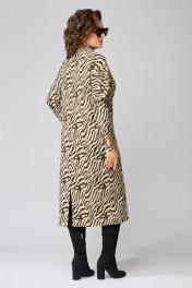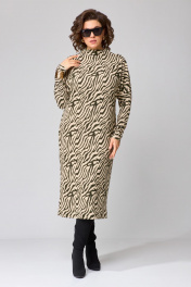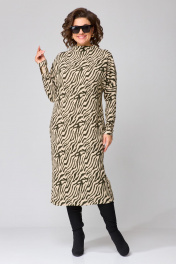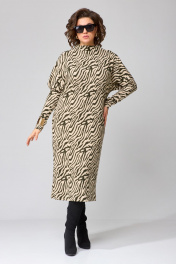 Платье женское полуприлегающего силуэта, цельнокроенного покроя рукавов. Выполнено из трикотажного полотна. Горловина оформлена воротником - цельнокроенной стойкой. Спинка со средним швом и разрезом. Рукав цельнокроеные с отрезной нижней частью. Цельнокроеный покрой рукава создает мягкую фантазийную линию плеч. Ширина изделия на уровне глубины: 42р- 48см, 44р – 50см, 46р – 50см, 48р – 53см, 50р – 55см, 52р – 57 см; 54р – 59 см. Ширина по линии талии: 42р- 44см, 44р – 46см, 46р – 48см, 48р – 50см, 50р – 52см, 52р – 54см; 54р – 56 см Ширина по линии бедер: 42р- 48см, 44р – 50см, 46р – 52см, 48р – 54см, 50р – 56см, 52р – 58см, 54р – 60 см Длина по среднему шву спинки: 42-48р – 119см, 50-54р – 120см. Ширина рукава под проймой: 42 - 21см, 44 – 22см, 46р – 23см, 48р – 24см, 50р – 25см, 52р – 26 см; 54р – 27 см Длина рукава: 42-46р – 78см, 48-52р – 81см.