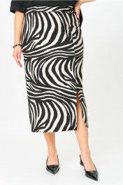 Стильный, комфортный комплект двойка из футболки и юбки с разрезом с рисунком «Зебра». Футболка из кулирной глади премиального качества с добавлением эластана обеспечивает мягкость, воздухопроницаемость и идеальную посадку по фигуре. Плотная, но дышащая ткань сохраняет форму даже после множества стирок, а эластичные волокна гарантируют свободу движений без деформации.На полочке карман из контрастной ткани и отделочная позолоченная пуговица. Юбка из текстиля, с разрезом на ноге. Пояс юбки на резинке. Легкие стрейчевые ткани комплекта очень комфортны для жаркого лета. Функциональные части комплекта хорошо сочетаются с другими элементами гардероба.