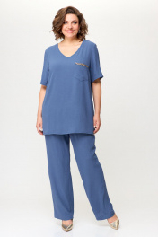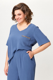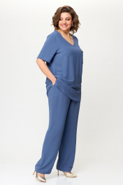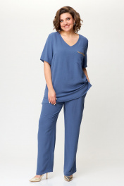 Туника и брюки из легкой ткани с высоким поясом OVERYOU М145/1 незабудка
