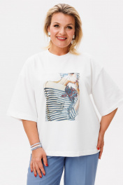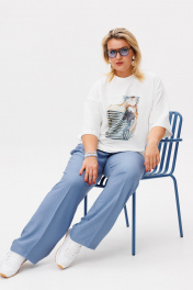 Комплект состоит из брюк и футболки свободного кроя. Футболка женская оверсайз с круглой горловиной. Спущенное плечо, рукав широкий по обхвату, что дает свободу движения. На полочке - авторская печать и небольшая подвеска, что придает футболке оригинальность и завершает образ. Брюки с высокой посадкой, полностью на резинке. Брюки прямые, что зрительно вытягивает фигуру и невероятно стройнит. Для удобства и функциональности в боковых швах карманы-«хулиганы».