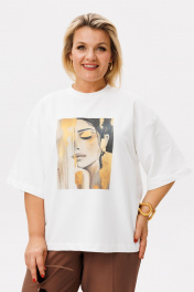 Комплект состоит из брюк и футболки свободного кроя. Футболка женская оверсайз с круглой горловиной. Спущенное плечо, рукав широкий по обхвату, что дает свободу движения. На полочке - авторская печать, что придает футболке оригинальность и завершает образ. Брюки с высокой посадкой, полностью на резинке. Брюки прямые, что зрительно вытягивает фигуру и невероятно стройнит. Для удобства и функциональности в боковых швах карманы-«хулиганы».