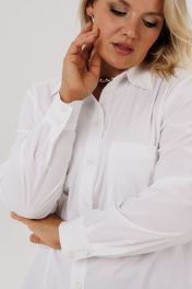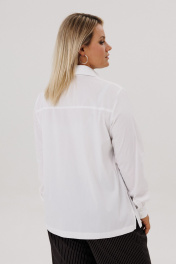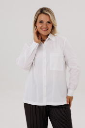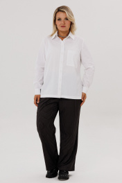 Блузка женская оверсайз типа «рубашка»– это универсальный предмет гардероба девушки. Блузка свободного силуэта. Воротник рубашечный отложной на стойке. Рукав втачной, одношовный, внизу на манжете, с застежкой на петлю-пуговицу. Внизу по боковым швам обработаны разрезы. Полочка с застежкой на петли-пуговицы, с накладными карманами. По спинке – кокетка. Белая рубашка считается эталоном стиля. Рубашка –это элемент одежды в любое время года и по любому случаю. Ткань не скатывается, держит форму. Благодаря удачным лекалам, рубашка займет любимое место в вашем гардеробе. Размер 54 56 58 60 62 64 ОГ 64 66 68 70 72 74 ОБ 65 67 69 71 73 75 Ширина плеча 14,5 14,5 14,5 14,7 14,7 14,7 Ширина рукава 22 23 24 24,5 25,5 26,5 Ширина спинки 44 44 44 47 47 47 Длина спинки 70 70 70 71 71 71 Длина рукава 60 60 60 60,5 60,5 60,5