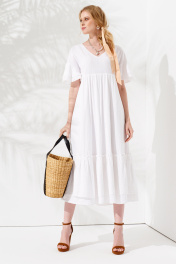 Платье свободное с завышенной талией и воланами Панда 100080w белый