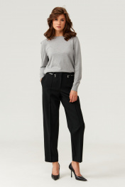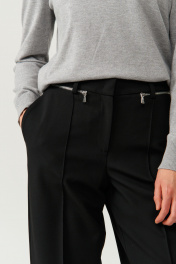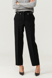 Брюки женские из поливискозной ткани для повседневной носки. Брюки чуть заужены к низу. Верхний срез брюк обработан притачным поясом, застежка на крючок, а также имеется застежка на тесьму-молнию в среднем шве брюк. Пояс со шлевками, что дает возможность носить их под пояс. Передняя часть брюк имеет застроченную стрелку, а также декоративные молнии по краю пояса. Задняя часть брюк имеет четыре талиевые вытачки. В брюках расположен в боковом шве потайной карман. Отличный классический вариант брюк черного оттенка, которые будут гармонично смотреться под любые изделия. В данных брюках вы обязательно будете ловить на себе восхищенные взгляды прохожих. 42 Брюки: Высота посадки - 27.5см, Длина брюк без пояса - 101см, Длина по внутреннему шву - 77.5см, Ширина брючин сверху - 66см, Обхват брюк по низу - 40см, Ширина по бедрам - 50.5см, Ширина по талии - 36.5см; 44 Брюки: Высота посадки - 28см, Длина брюк без пояса - 101см, Длина по внутреннему шву - 77.5см, Ширина брючин сверху - 68см, Обхват брюк по низу - 40.5см, Ширина по бедрам - 52.5см, Ширина по талии - 38.5см; 46 Брюки: Высота посадки - 28.5см, Длина брюк без пояса - 101.5см, Длина по внутреннему шву - 77.5см, Ширина брючин сверху - 70см, Обхват брюк по низу - 41см, Ширина по бедрам - 54.5см, Ширина по талии - 40.5см; 52 Брюки: Высота посадки - 29.5см, Длина брюк без пояса - 102.5см, Длина по внутреннему шву - 77.5см, Ширина брючин сверху - 77см, Обхват брюк по низу - 42.5см, Ширина по бедрам - 60.5см, Ширина по талии - 47.5см;