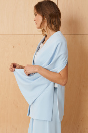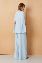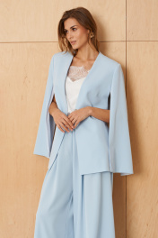 Этот женский жакет выполнен из струящейся ткани, что делает его идеальным для повседневной носки. Модель обладает прямым силуэтом, который обеспечивает комфорт и универсальность. Застежка на одну кнопку придает жакету аккуратный и элегантный вид, а перед украшен двумя нагрудными вытачками, подчеркивающими линию груди и создающими приятную посадку. Спинка с центровым швом и двумя талиевыми вытачками обеспечивает отличную посадку по фигуре. Боковой шов укреплен притачной небольшой частью, что добавляет прочности и аккуратности конструкции. V-образная горловина придает образу изящность, а длинные втачные рукава с свободным разрезом создают комфорт и стильный акцент. Жакет на подкладке, что обеспечивает дополнительный комфорт при ношении и аккуратный внешний вид. Выполненный в голубом цвете, этот жакет отлично дополняет повседневные образы и легко сочетается с различными элементами гардероба. 56 Жакет: Длина изделия - 74.5см, Длина рукава - 64см, Ширина плеча - 15см, Ширина по бедрам - 61.5см, Ширина по груди - 58см; 58 Жакет: Длина изделия - 74.5см, Длина рукава - 64см, Ширина плеча - 15см, Ширина по бедрам - 64см, Ширина по груди - 60см;