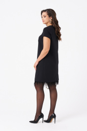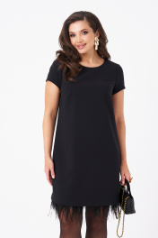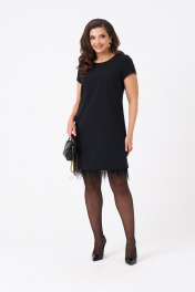 Это женское платье из поливискозной ткани, предназначенное для повседневной носки. Перед имеет две нагрудные вытачки, что придает изделию аккуратный и стройнящий силуэт. Спинка выполнена со средним швом и оснащена потайной застёжкой-молнией в шве для удобства надевания. Нижняя часть платья украшена декоративными перьями, добавляющими оригинальности и изящества образу. Перья крепятся на тесьму с кнопками, что позволяет отстёгивать их перед стиркой либо носить платье без них. Горловина, расширенная создает комфортное облегание и стильный вид. Короткие втачные рукава с фигурным низом делают платье практичным и легким в носке. Цвет изделия — классический черный, что делает его универсальным и подходящим для различных случаев. 42 Платье: Длина изделия по спинке - 87см, Длина рукава - 15см, Ширина плеча - 8,4см, Ширина по бедрам - 49см, Ширина по груди - 45см, Ширина по талии - 43см, Ширина рукава внизу - 15,5см; 44 Платье: Длина изделия по спинке - 87см, Длина рукава - 15,5см, Ширина плеча - 8,6см, Ширина по бедрам - 51см, Ширина по груди - 47см, Ширина по талии - 45см, Ширина рукава внизу - 16,5см; 46 Платье: Длина изделия по спинке - 87см, Длина рукава - 16см, Ширина плеча - 8,8см, Ширина по бедрам - 53см, Ширина по груди - 49см, Ширина по талии - 47см, Ширина рукава внизу - 17,5см; 48 Платье: Длина изделия по спинке - 87см, Длина рукава - 16см, Ширина плеча - 9см, Ширина по бедрам - 55см, Ширина по груди - 51см, Ширина по талии - 49см, Ширина рукава внизу - 18,5см;