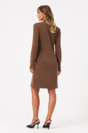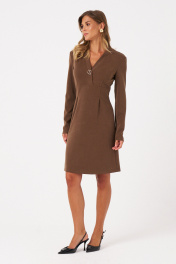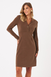 Женское платье из мягкого вискозного трикотажного полотна выполнено в стиле с расширением к низу, что обеспечивает комфортную и женственную посадку. Модель выполнена в коричневом оттенке и имеет длину миди. Перед отрезной чуть выше линии талии, с двумя нагрудными вытачками, подчеркивающими линию груди. Юбка переда украшена двумя складками, добавляющими объем и изящность силуэту. Спинка с средним швом и двумя талиевыми вытачками обеспечивает хорошую посадку и комфорт. V-образная горловина обработана планкой, что придает образу элегантность. Длинные втачные рукава дополняют стильный и практичный дизайн платья. В комплект входит декоративная брошь, которая позволяет дополнительно подчеркнуть индивидуальность образа. Это универсальное платье отлично подойдет для повседневных выходов и легко сочетается с различными аксессуарами и обувью. 48 Платье: Длина изделия по спинке - 94см, Длина рукава - 63см, Ширина плеча - 12.2см, Ширина по бедрам - 52см, Ширина по груди - 50см, Ширина рукава - 16.5см; 50 Платье: Длина изделия по спинке - 94см, Длина рукава - 63см, Ширина плеча - 12.3см, Ширина по бедрам - 54см, Ширина по груди - 52см, Ширина рукава - 17см; 52 Платье: Длина изделия по спинке - 95см, Длина рукава - 63см, Ширина плеча - 12.4см, Ширина по бедрам - 56см, Ширина по груди - 54см, Ширина рукава - 17.5см;