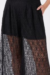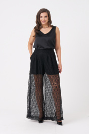 Брюки выполнены из изысканной кружевной ткани, которая придает образу романтичность и женственность. Верхний срез брюк оформлен притачным поясом, обеспечивающим хорошую посадку и аккуратный внешний вид. В задней части пояса расположена вставка на резинке, что делает модель более удобной и эластичной, позволяя легко адаптироваться к разным фигурам и обеспечивая комфорт в движении. Передняя часть брюк украшена мягкими складками, которые визуально удлиняют ноги и добавляют образу изящества и утонченности. В боковом шве располагаются боковые карманы. Такой дизайн делает брюки универсальным и элегантным элементом гардероба, идеально сочетающимся с различными топами и обувью. 46 Брюки: Высота посадки - 29см, Длина брюк без пояса - 106.5см, Длина по внутреннему шву - 81см, Ширина брючин сверху - 88см, Обхват брюк по низу - 98см, Ширина по бедрам - 54см, Ширина по талии - 35см; 48 Брюки: Высота посадки - 29.5см, Длина брюк без пояса - 106.5см, Длина по внутреннему шву - 81см, Ширина брючин сверху - 90см, Обхват брюк по низу - 100см, Ширина по бедрам - 56см, Ширина по талии - 37см; 50 Брюки: Высота посадки - 30см, Длина брюк без пояса - 107см, Длина по внутреннему шву - 81см, Ширина брючин сверху - 92см, Обхват брюк по низу - 102см, Ширина по бедрам - 58см, Ширина по талии - 39.5см; 52 Брюки: Высота посадки - 30см, Длина брюк без пояса - 107см, Длина по внутреннему шву - 81см, Ширина брючин сверху - 94см, Обхват брюк по низу - 104см, Ширина по бедрам - 60см, Ширина по талии - 42см;