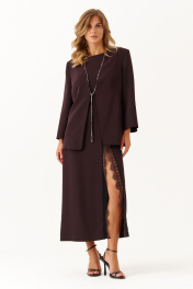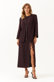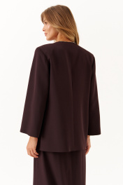 Жакет женский из легкой струящейся ткани, предназначенный для торжественных мероприятий. Модель выполнена в коричневом цвете и отличается элегантным кроем с двумя нагрудными вытачками на переде и средним швом на спинке, что обеспечивает идеальную посадку по фигуре. Край борта украшен декоративным шнуром со стразами, который плавно проходит вдоль V-образной горловины и борта, придавая изделию утонченность и изысканный блеск. Широкие втачные рукава добавляют свободу движения и стильный акцент. Этот жакет станет прекрасным дополнением к вечернему или праздничному образу. 44 Жакет: Длина изделия по спинке - 70см, Длина рукава - 55см, Ширина по бедрам - 54см, Ширина по груди - 51см, Ширина по талии - 49см, Ширина рукава вверху - 18.5см; 46 Жакет: Длина изделия по спинке - 70см, Длина рукава - 55см, Ширина по бедрам - 56см, Ширина по груди - 53см, Ширина по талии - 51см, Ширина рукава вверху - 19.5см; 48 Жакет: Длина изделия по спинке - 70см, Длина рукава - 55см, Ширина по бедрам - 58см, Ширина по груди - 55см, Ширина по талии - 53см, Ширина рукава вверху - 20.5см;