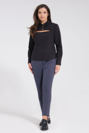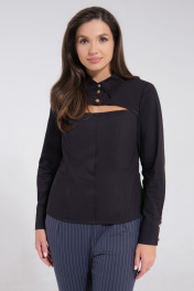 Блузка приталенная из хлопка с оригинальным воротником Панда 117740w черный