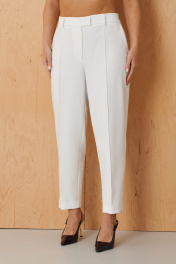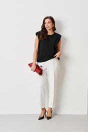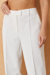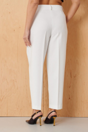 Женские брюки из поливискозной ткани представлены в классическом молочном цвете, который легко сочетается с любыми оттенками верхней одежды и аксессуарами. Модель выполнена с притачным поясом, дополненным шлёвками для возможности носить их с ремнём или без него, что обеспечивает универсальность и индивидуальный подход к стилю. Застежка расположена в среднем шве и включает в себя крючок и молнию, гарантируя удобство использования и аккуратную посадку по фигуре. Передняя часть брюк украшена застроченной стрелкой, добавляющей строгости и элегантности силуэту, а задняя часть оснащена двумя талиевыми вытачками для оптимального прилегания и комфорта. В боковом шве расположен карман с подкройным бочком, сочетающий практичность и лаконичный дизайн, а также по низу располагается потайная застежка молния. Универсальность модели позволяет носить её как в деловой обстановке, сочетая с блузками и пиджаками, так и в повседневных образах с футболками, свитерами или свободными топами. Идеальный вариант для тех, кто ценит комфорт, стиль и функциональность в одной вещи. 44 46 48