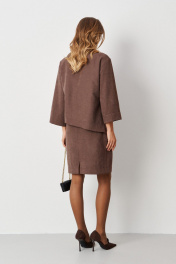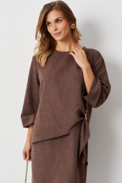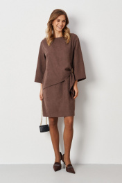 Элегантное женское платье из смесовой ткани с эффектом замши, которое сочетает в себе стиль и комфорт. Модель выполнена с имитацией блузки, что придает ей уникальный и современный вид. В боковом шве предусмотрен разрез, который добавляет нотку игривости, а декоративная металлическая деталь в боковой части подчеркивает изысканность дизайна. Нижняя часть платья оформлена средним швом и небольшим разрезом, что обеспечивает свободу движений. Расширенная горловина придает образу легкость и женственность. Длинные втачные рукава длиной 3/4 создают стильный силуэт, а длина платья чуть выше колена добавляет кокетливости. Платье представлено в красивом цвете мокко, который отлично вписывается в любой гардероб и подходит для различных случаев, от повседневных до более нарядных мероприятий. Это платье станет отличным выбором для тех, кто ценит комфорт и стиль в одном изделии. 44 Платье: Длина изделия - 93см, Длина рукава - 46см, Ширина по бедрам - 52см, Ширина по груди - 52см, Ширина по талии - 46см, Ширина рукава вверху - 19,5см, Ширина рукава внизу - 19,5см; 46 Платье: Длина изделия - 93см, Длина рукава - 46см, Ширина по бедрам - 54см, Ширина по груди - 54см, Ширина по талии - 48см, Ширина рукава вверху - 20,5см, Ширина рукава внизу - 20см; 48 Платье: Длина изделия - 93,5см, Длина рукава - 46см, Ширина по бедрам - 56см, Ширина по груди - 56см, Ширина по талии - 50см, Ширина рукава вверху - 21,5см, Ширина рукава внизу - 20,5см; 50 Платье: Длина изделия - 94см, Длина рукава - 46см, Ширина по бедрам - 58см, Ширина по груди - 58см, Ширина по талии - 52см, Ширина рукава вверху - 22см, Ширина рукава внизу - 21см; 54 Платье: Длина изделия - 95см, Длина рукава - 46см, Ширина по бедрам - 62см, Ширина по груди - 62см, Ширина по талии - 56см, Ширина рукава вверху - 23,5см, Ширина рукава внизу - 22см;