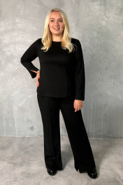 Стильный брючный костюм женский станет вашим помощником на прогулке, в офисе или дома. Он пошит из приятного на ощупь трикотажа, хорошо садится по фигуре, дарит комфорт в межсезонье или прохладным летним днем. Женский костюм oversize выполнен в больших размерах 52-60. Благодаря удачному крою комплект женский скрывает лишние сантиметры. Джемпер свободного кроя с разрезами на рукавах вместе с брюками создают стильный тандем, а глубокий синий цвет визуально стройнит. Вы можете купить женский костюм с брюками на выгодных условиях для себя или в подарок. 52 Джемпер: Длина изделия - 65см, Длина рукава - 62см, Ширина плеча - 10,5см, Ширина по груди - 55см, Ширина по низу - 60см, Ширина рукава - 19см; Брюки: Высота посадки - 32см, Длина брюк с поясом - 113см, Длина по внутреннему шву - 85см, Ширина брючин сверху - 76см, Ширина брючин по низу - 61см, Ширина по бедрам - 60см, Ширина по талии - 42,5см; 54 Джемпер: Длина изделия - 65см, Длина рукава - 62см, Ширина плеча - 10,5см, Ширина по груди - 57см, Ширина по низу - 62см, Ширина рукава - 19,5см; Брюки: Высота посадки - 32,5см, Длина брюк с поясом - 113см, Длина по внутреннему шву - 85см, Ширина брючин сверху - 78см, Ширина брючин по низу - 62см, Ширина по бедрам - 62см, Ширина по талии - 44,5см; 58 Джемпер: Длина изделия - 65см, Длина рукава - 62см, Ширина плеча - 10,5см, Ширина по груди - 61см, Ширина по низу - 66см, Ширина рукава - 20,5см; Брюки: Высота посадки - 33,5см, Длина брюк с поясом - 113см, Длина по внутреннему шву - 85см, Ширина брючин сверху - 82см, Ширина брючин по низу - 64см, Ширина по бедрам - 66см, Ширина по талии - 48,5см; 60 Джемпер: Длина изделия - 65см, Длина рукава - 62см, Ширина плеча - 10,5см, Ширина по груди - 63см, Ширина по низу - 68см, Ширина рукава - 21см; Брюки: Высота посадки - 34см, Длина брюк с поясом - 113см, Длина по внутреннему шву - 85см, Ширина брючин сверху - 84см, Ширина брючин по низу - 65см, Ширина по бедрам - 68см, Ширина по талии - 50,5см;