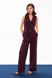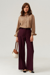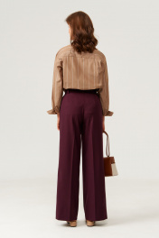 Эти женские брюки выполнены из поливискозной ткани, что обеспечивает комфорт и легкость при повседневной носке. Модель обладает прямым кроем, идеально подходящим для ежедневного использования. Верхний срез брюк обработан притачным поясом, который удобно фиксируется застежкой на один крючок и тесьме-молнии в среднем шве, что обеспечивает надежную посадку. В брюках предусмотрены шлевки, позволяющие носить их под ремень для дополнительной фиксации и стиля. Задняя часть украшена четырьмя талиевых вытачками, которые придают модели аккуратную посадку и подчеркивают фигуру. В боковом шве расположен карман с подкройным бочком, выполненный из поливискозной подкладки, что добавляет функциональности и комфорта. Эти классические брюки бордового оттенка станут универсальным элементом гардероба, гармонично сочетающимся с различными изделиями и подходящим для повседневных образов. 44 Брюки: Высота посадки - 27.5см, Длина брюк без пояса - 106см, Длина по внутреннему шву - 82.5см, Ширина брючин сверху - 68см, Обхват брюк по низу - 61.5см, Ширина по бедрам - 49.5см, Ширина по талии - 37см;