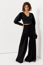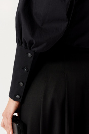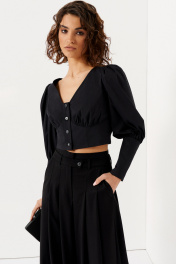 Блуза короткая с глубоким V и объемными рукавами из хлопка Панда 132140w черный