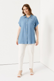 Летняя блузка с коротким рукавом – идеальный выбор одежды для работы и проведения досуга за пределами офиса. Данная модель составит элегантные сеты с брюками, джинсами, юбкой, отлично впишется в требования дресс-кода. Голубая блузка на пуговицах имеет свободный крой, дополненный отложным воротником рубашечного типа, нагрудным карманом с фигурным клапаном. Изделие пошито из мягкой вискозной ткани, приятной к телу. Оно незаменимо в теплые дни, хорошо пропускает воздух к коже. Выбирайте и заказывайте женскую блузу больших размеров из представленной сетки – 50-58, чтобы даже в обычный рабочий день выглядеть стильно и нарядно. 50 Блузка: Длина изделия - 75см, Обхват шеи - 47см, Ширина плеча - 29см, Ширина по груди - 60см, Ширина по низу - 62см;