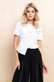 Женский джемпер из хлопкового трикотажа белого цвета – стильное и модное решение для повседневного и офисного образа. Элегантная модель прямого силуэта подойдет для делового стиля, подчеркнет женственность и создаст нарядный вид. Джемпер украшен большим бантом, который делает его особенно привлекательным и трендовым. Горловина круглая, что обеспечивает комфорт в носке, а втачные рукава длиной чуть выше локтя добавляют изящности. Такой базовый элемент гардероба отлично сочетается с юбками, брюками и джинсами, позволяя создавать разнообразные стильные сочетания для работы в офисе, праздничных мероприятий и повседневной жизни. Одежда из натурального трикотажа приятна к телу, позволяет коже дышать, делая джемпер идеальным выбором для теплого сезона – весны и лета. Это отличный вариант как для деловой встречи, так и для прогулок или отдыха с друзьями. Джемпер легко вписывается в современную моду, следуя актуальным трендам, при этом остается удобным и универсальным. Красивый дизайн делает его популярным среди женщин, предпочитающих стиль и комфорт. Этот нарядный вариант прекрасно подойдет для праздника или официального мероприятия. Благодаря лаконичному фасону и акценту в виде банта джемпер выглядит модно и элегантно. Он станет незаменимой вещью в гардеробе, позволяя создавать женственные и стильные образы. Производится в Беларуси, что гарантирует высокое качество материалов и пошива. Доступен в разных размерах, что позволяет выбрать идеальную посадку по фигуре. Этот джемпер – прекрасный выбор для современных женщин, ценящих трендовую и комфортную одежду. 42 Джемпер: Длина изделия - 67см, Длина рукава - 22см, Ширина плеча - 12см, Ширина по груди - 48см, Ширина по низу - 48см; 44 Джемпер: Длина изделия - 67см, Длина рукава - 22см, Ширина плеча - 12см, Ширина по груди - 50см, Ширина по низу - 50см; 46 Джемпер: Длина изделия - 67см, Длина рукава - 22см, Ширина плеча - 12см, Ширина по груди - 52см, Ширина по низу - 52см; 48 Джемпер: Длина изделия - 68см, Длина рукава - 22см, Ширина плеча - 12см, Ширина по груди - 54см, Ширина по низу - 54см;