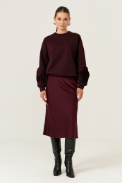 Этот женский джемпер выполнен из поливискозного трикотажного полотна и предназначен для повседневной носки. Модель обладает прямым силуэтом, обеспечивающим комфорт и универсальность. Низ изделия обработан притачным поясом, который подчеркивает линию талии и придает образу завершенность. Округлая горловина и спущенная линия плеча создают мягкий и современный силуэт. Длинные втачные рукава с низом, обработанным притачной манжетой, обеспечивают удобство и стильный внешний вид. Особенностью дизайна являются роскошные тканевые цветы, расположенные на низу рукавов, что придает джемперу особую изюминку и элегантность. Бордовый оттенок делает этот джемпер ярким и привлекательным элементом гардероба. Он безусловно станет вашим фаворитом — в нем вы будете чувствовать себя комфортно и выглядеть модно и стильно 48 Джемпер: Длина изделия - 61см, Длина рукава - 48см, Ширина плеча - 25.5см, Ширина по груди - 62см, Ширина по низу - 61см, Ширина рукава - 22.4см; 52 Джемпер: Длина изделия - 61см, Длина рукава - 48см, Ширина плеча - 26.5см, Ширина по груди - 64см, Ширина по низу - 63см, Ширина рукава - 24см; 56 Джемпер: Длина изделия - 62.5см, Длина рукава - 48см, Ширина плеча - 27.5см, Ширина по груди - 66см, Ширина по низу - 65см, Ширина рукава - 25.6см;