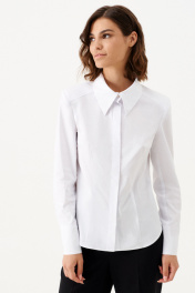 Демисезонная белая блузка с нагрудными вытачками и стойкой Панда 150140w белый